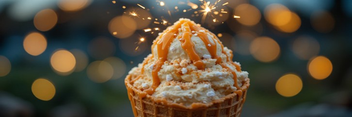 ✨ Toffee Sparkle Ice Cream: Bonfire Night vibes with molten toffee + popping candy sparkle — a scoop that fizzles like fireworks.